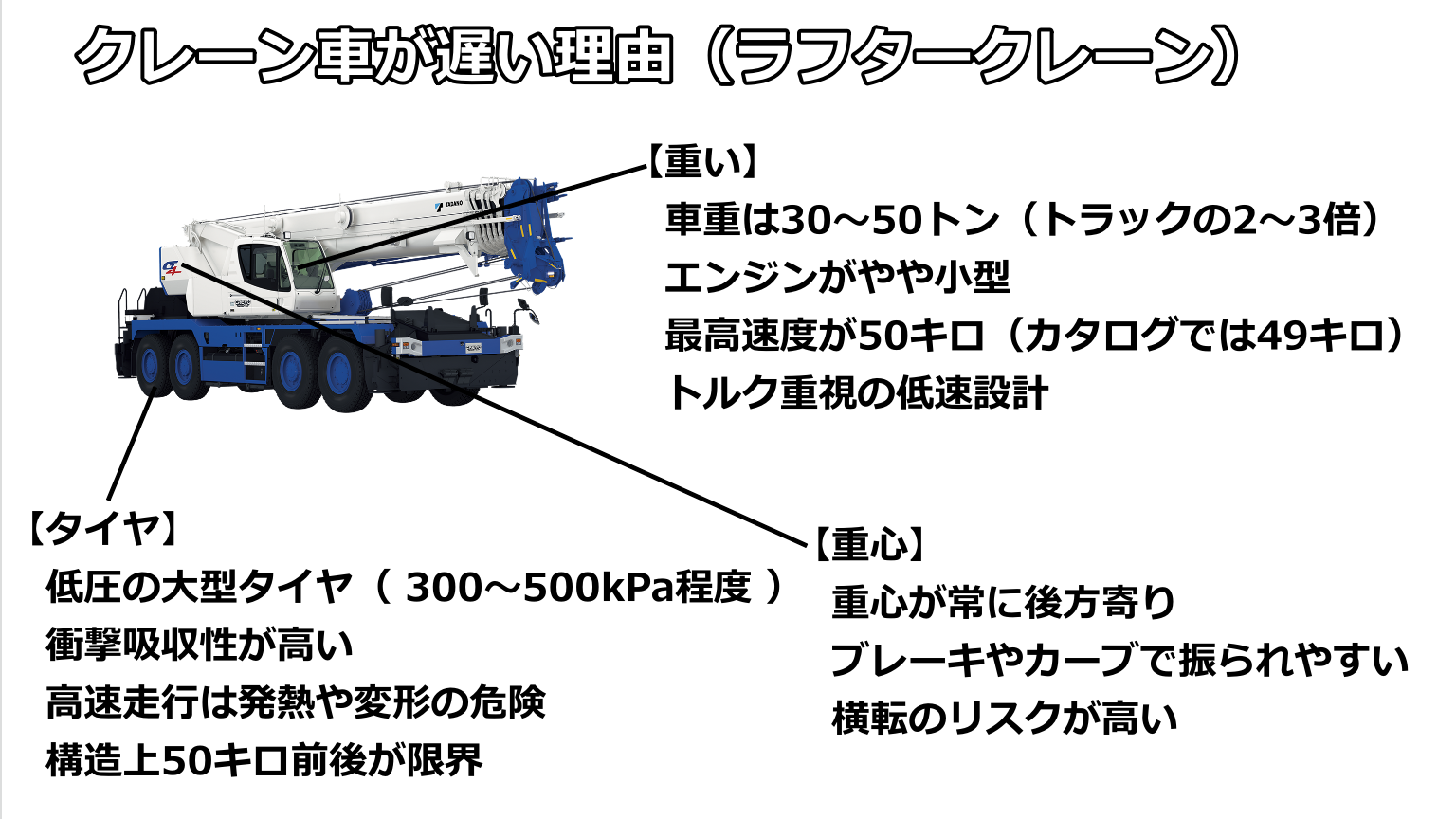 クレーン車が遅いのは、安全のために設計された、必然の遅さと言えます。