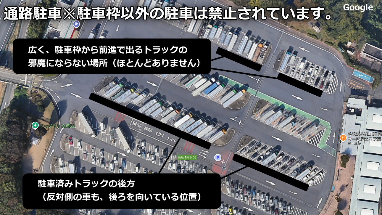 というか、駐車枠を超えたトラックはどこに停めているのかという話ですが、それは通路などに停めているのでしょう。