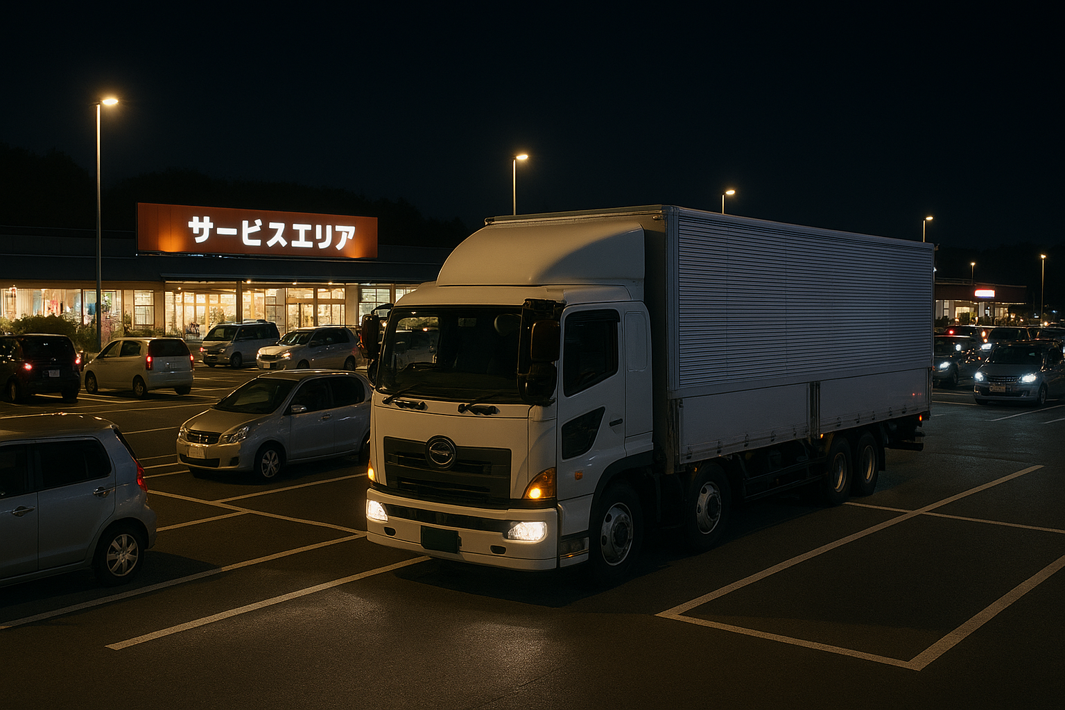 - サービスエリアの大型車駐車枠の幅は、3.3メートルから3.5メートルほど。