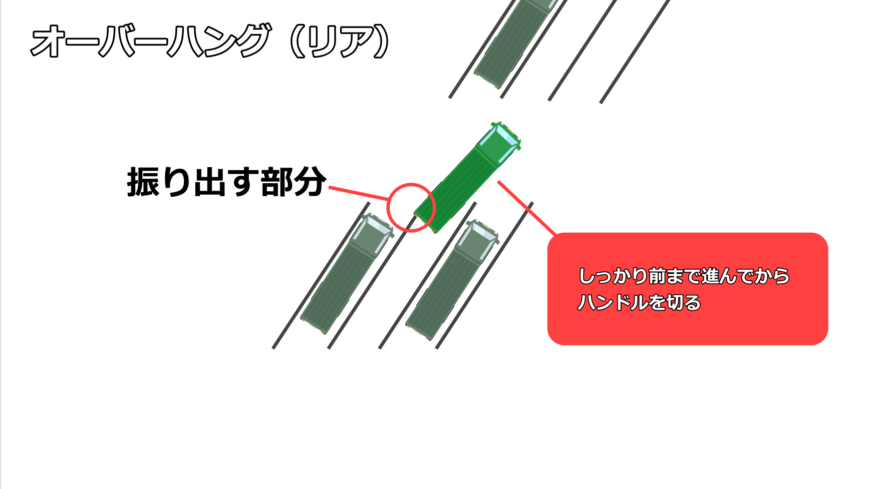 次に気をつけたいのが、出庫時の「オーバーハング」。