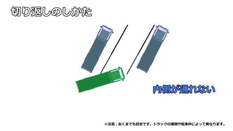 切り返すときバックする距離が少ないので、「後ろのトラックが詰めてきてバックできなかった」ということが起こりにくくなるのです。