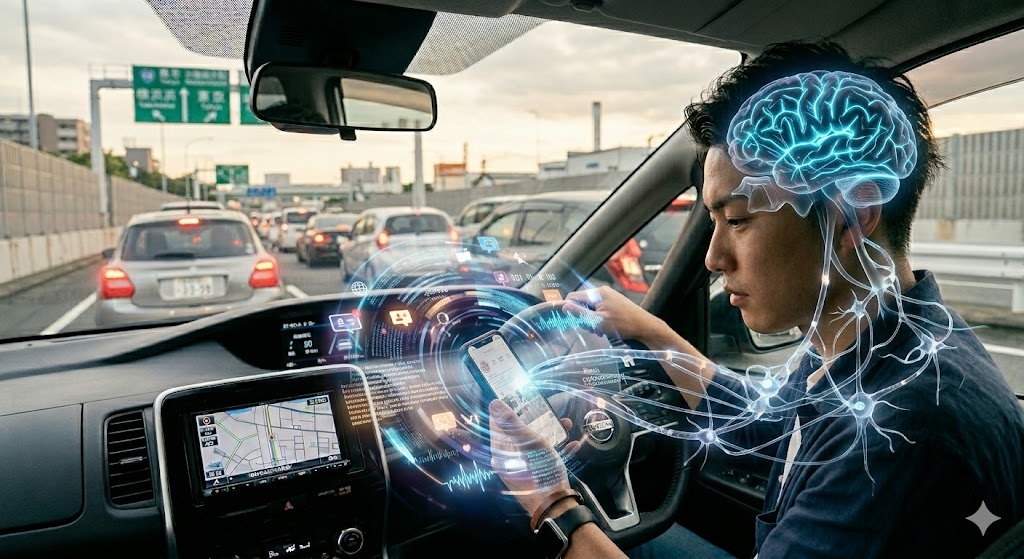 運転に慣れてオートパイロット状態になるほど、脳は刺激を求めてスマホに手を伸ばしやすくなります。
