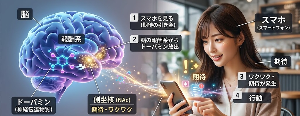「スマホを開こう」って思ったとき、私たちの脳内ではドーパミンが分泌されます。
