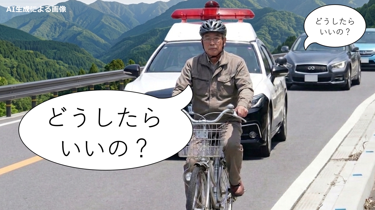 道路に一台の自転車とパトカーが出現すれば、その場の全員が「どうしたらよいかわからなくなる」現象。